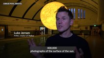 Community swimming pool sees giant sun sculpture suspended above the water