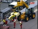 00:03:44Steve Barrichello's mechanical underneath the Ferrari they put the quick lift jack under the front took the wheels off the guy walked away and it whizzed straight up in the air the quick lift car dropped on the ground made a big bang