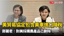 美貿易協定包含美車進口降稅!鄭麗君:對美採購農產品已刪除