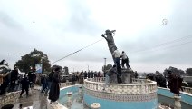 Tabka’da halk, terör örgütünün sembolü olarak görülen heykelleri yıktı