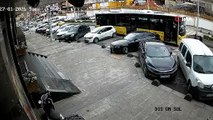 Esenler'de İETT otobüsünün park halindeki araçlara çarptığı kaza kamerada