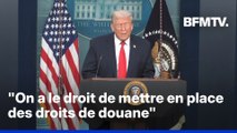 "On a le droit de mettre en place des droits de douane", déclare Donald Trump en conférence de presse depuis la Maison Blanche