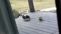 Snow-speckled void floofs finding their way to a free lunch. | #SparklegleamFarm #Bunny #farm #rabbit #farmanimals #cute