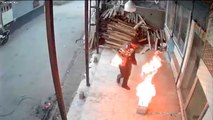 Ateşi benzinle harlamak istedi, yanmaktan son anda kurtuldu; o anlar kamerada