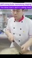 the skill of a blind person cutting meat