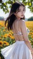 A girl standing in a flower garden