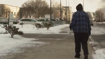 00:06Malgré une vague de froid polaire, des manifestants se rassemblent ici devant le bâtiment de la police fédérale de l'immigration
