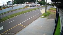 Vídeo mostra carro rampando no meio-fio e atingindo poste em Umuarama
