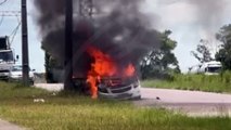 Momento de pânico: motorista sente cheiro de queimado e carro é destruído pelo fogo na CIC