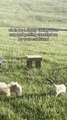 Cat Stops by to Say Hi to Napping Sheep in Sun
