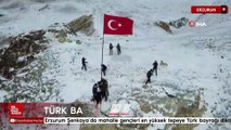 Erzurum Şenkaya’da mahalle gençleri en yüksek tepeye Türk bayrağı dikti