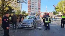 Otomobile çarpmak istemeyen kadın duvara böyle çarptı!