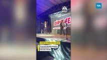 Aydın’ın Kuyucak ilçesinde düzenlenen bir etkinlikte eğlence ve korku bir arada yaşandı. Program çerçevesinde zeybek oynamak için sahneye çıkan Belediye Başkanı, oyununu tamamlayıp sahneden indiği sırada birden çıkan fırtına sahneyi ve dev ekranı devirdi. Kuyucak Belediye Başkanı Uğur Doğanca'nın saniyelerle ölümden kurtulduğu anlar amatör kameraya böyle yansıdı.