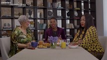 00:00Text, crazy conversations, Chase, Essence, three women sit around the table over lunch.