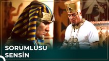 Züleyha tutkusundan vazgeçmemektedir. İşkence fayda etmeyince serbest kalma karşılığında boyun eğmesini ister ancak yine aynı cevabı alır. Amon Hutep, suikastin faillerini ortaya çıkarmak için Ank Maho ve rahipleri sarayda şölene davet eder. Apophis ve Kimuni’nin şahitliğinde rahipleri mahkum edecektir. Yusuf, Kimuni’ye –“Amon Hutep’in yanında beni an Yusuf suçsuz. Boş yere zındanda”. Demesini söyler. Ancak Rabbinden başkasından yardım istediği için pişman olur ve tevbe eder. Şahitlerin inkar etmesi sonucu rahipler Amon Hutep’in elinden kurtulur.