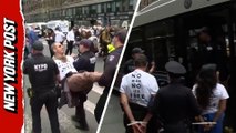 Police detain protester outside NY senator's offices