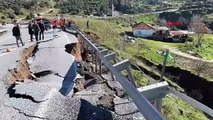 Aydın'da toprak kayması; kara yolu kısmen çöktü