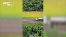 Câmera da Catve flagra ciclista sendo atropelado no Trevo Guarujá