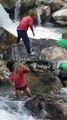 bare hand fishing in Nepal |