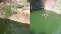 Count on the ducklings to lift your spirits with their playful behavior. This delightful clip from Brownsville captures a mother duck guiding her little ones as they learn to swim. The youngsters start by attempting to roll down a hill and reach the water, which turns out to be a bit tricky for them. After a few missteps, some hesitation, and observing their mother carefully navigate down the cliff, the ducklings muster the courage to follow her lead. While their descent isn't as flawless as that of their mother, it’s sufficient to prepare them for the next adventure: swimming. 'This was filmed at the Gladys Porter Zoo, where these ducklings entertained us!' remarked the videographer, Katie Pedraza. This footage was captured on July 6, 2018.