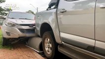 Motorista arrasta anilha e atinge traseira de carro estacionado em Cascavel