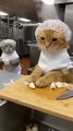 This cat's garlic-chopping skills are so professional!