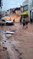 Morador fica preso na correnteza de enchente em Ubá. A cidade foi atingida por enchentes após a forte chuva da madrugada dessa terça (24).