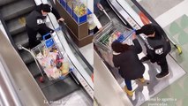 MAN CARRIES GOLDEN RETRIEVER UP ESCALATOR LIKE A BABY