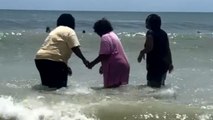 The clip shows siblings near the shoreline as the camera records.