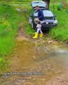 Car passes the road covered in mud