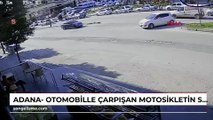 Adana- Otomobille çarpışan motosikletin sürücüsü yaralandı; kaza anı kamerada