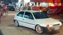 Cena curiosa: carro rebaixado fica preso em lombada e PMs ajudam a empurrar no litoral do Paraná; vídeo