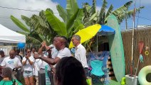 L'arrivée de Vanessa Miranville (en fanfare) à son meeting de campagne à la Possession