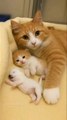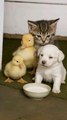 cat loves her baby and puppy
