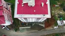 Trabzon'da istinat duvarı çöktü, 9 katlı bina zarar gördü