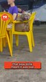 Playful puppy tumbles down stairs with pickle toy but is saved just in time
