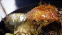 04:45Ori's laying the foundations for his lamb and guinea fowl terrine, also known as a farce.