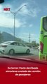🚨🚌 Momentos de p@nico se vivieron cuando un poste de teléfono fue derribado y terminó atravesando el costado de un camión de pasajeros que circulaba por la zona.