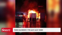 Park halindeki 2 TIR alev alev yandı