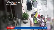 شاهد اللحظة المخيفة التي تحطم فيها الباب الزجاجي على رأس هذا الطفل
