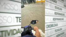 Homem cai em ponte alagada, na Bahia, ao tentar atravessar com motocicleta