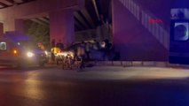 Üst geçidin beton blokuna çarpan otomobilde öldü