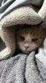 A Cat Sitting Cozy Inside a Blanket.β π±