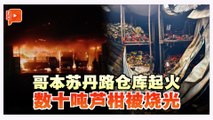 大港海产公会旁一处烟花档口突然起火,现场堆放的大量烟花和爆竹不断接着被引燃,现场爆响声此起彼落,场面相当惊险。