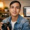 Seorang pria muda berambut cokelat pendek tampil rapi dengan jaket putih dan kaus polos.