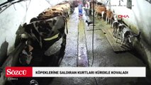 Köpeklerine saldıran kurtları kürekle kovaladı