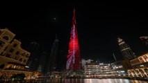 شاهد برج خليفة يكتسي بشعار صلاة من أجل الإنسانية