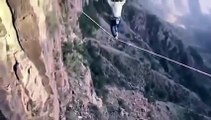 بالفيديو شاب يقوم بقفزة مبهرة من قمة جبل بالرياض