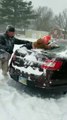 اضغط لمشاهدة الفيديو: رجل يستخدم طفله الصغير كممسحة لتنظيف الثلج من سيارته!