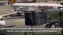 مشهد صادم لمسافرين يتعلقون بالطائرة بسبب التأخير